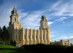 El Templo de Manti, Utah es el nombre oficial de un edificio religioso histórico y uno de los templos construidos y operados por la Iglesia de Jesucristo de los Santos de los Últimos Días, el quinto templo construido por la iglesia y el tercero en el estado, ubicado en la ruta federal 89, en la entrada de la ciudad de Manti en el estado estadounidense de Utah.[5] Con anterioridad al templo de Manti, solo se habían dedicado el templo de St. George y el templo de Logan, en Utah, y el templo de Nauvoo y el templo de Kirtland, al este del río Misisipi. El templo domina la arquitectura del Condado de Sanpete y puede ser divisado desde diversas autopistas de la región en un radio de varios kilómetros. El templo cuenta con cuatro salones para investiduras, ocho altares matrimoniales y el tradicional baptisterio donde se efectúan bautismo por los muertos.[4] Al igual que en el resto de los templos de la iglesia SUD, solo los miembros considerados dignos pueden entrar al templo de Manti.