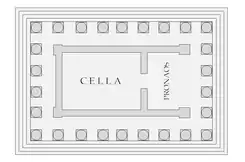 Las primeras reconstrucciones del templo se basaron en observaciones precisas de los restos de un templo, con seis pilares en el frente y en un lado nuevo, casi intercolumnio, lo que significa que la distancia entre las columnas es equivalente a uno y medio de su diámetro, una crepidoma de cuatro pasos en el que la celda tenía que tener casi el doble de ancho.[6] El arqueólogo alemán Heinrich Brunn estimó el diámetro de las columnas en la base entre 1,15 y 1,25 metros con una distancia entre las columnas de 2,66 metros. Las columnas estaban más restringidas que en el tipo de templo plano de intercolumnado según lo definido por el arquitecto clásico Vitruvio.[5] El tambor inferior de las ranuras de la columna está tallado en el mismo bloque de mármol del Pentélico, ya que la base consta de un único toro, que recuerda el elemento superior de una base jónica.[5]