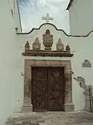 El templo se encuentra rodeado por un atrio limitado por una reja de forjado metálico y con columnas de cantera en sus ángulos, en dicho atrio se encuentra un busto de Miguel Hidalgo en conmemoración a que su cuerpo reposó en la capilla de San Antonio. Al extremo izquierdo se encuentra el portón de acceso del antiguo convento, ornamentado por el Escudo Franciscano labarado en cantera.