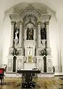 El altar original del ábside, de estilo barroco, se encuentra oculto por otro de cantera y estilo neoclásico que fue construido en 1906 y en los extremos del crucero se encuentran dos retablos del siglo XVIII tallados en madera dorada y policromada de estilo barroco y con columnas estípite, que originalmente se encontraban en la Capilla de Nuestra Señora de Loreto del antiguo Colegio de Jesuitas de San Felipe, y que hoy es el Palacio de Gobierno de Chihuahua, el de la izquierda está dedicado a Jesús Nazareno, el de la derecha a la Madre Santísima de la Luz. El techo de toda la construcción era de viguería y terrado, que fue sustituido en tiempos modernos por losa de concreto.
