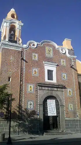 Posee una fachada barroca, estilo poblano, con petatillo y lozas de talavera en las que se muestran nueve imágenes.[3] Parte del interés estilístico del templo está en la cerámica de la fachada y los ladrillos, un trabajo de artesanos de la talavera poblana. De pequeño tamaño, es de una sola nave y disposición lineal. [1]