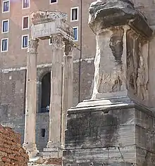 ![]() Las tres columnas que quedan en pie del Templo de Vespasiano en el Foro Romano. | ||