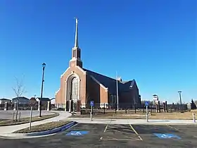 El templo se completó en agosto de 2020. La iglesia estableció la casa abierta para octubre de ese año, el cual fue postpuesto por motivos de la pandemia de COVID-19, así como su dedicación oficial. El estilo arquitectónico del templo se basó en la modernización del estilo de las iglesias antiguas de Manitoba. El exterior del edificio es de ladrillo rojo, el techo de pizarra y un pináculo único color dorado puesta sobre la entrada principal. Las ventanas de vidrio de arte original representan el azafrán de la pradera, flor provincial de Manitoba.[2]