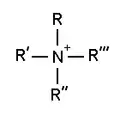 Se llama tensoactivos catiónicos a tensoactivos que tienen un grupo funcional en la molécula cargado positivamente, sin embargo, para mantener la neutralidad eléctrica, éste está asociado a un anión (ion negativo). Como cada agente tensoactivo, los tensoactivos catiónicos están formados por una parte polar y una parte no polar. La parte no polar son grupos alquilo diferentes. El grupo polar es generalmente un grupo amonio cuaternario.[1]
