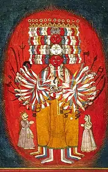 La teofanía más conocida se encuentra en el Bhagavad-Gitā, una pequeña sección del inmenso texto épico MahāBhārata. En el Gitā, el famoso guerrero Arjuna le pide a su amigo Krishna (tras un monólogo de este, en el campo de batalla de Kurukshetra, en el que revela que es más que un mortal) que revele su verdadera forma. Krishna accede y le otorga a Arjuna la visión espiritual, que le permite ver a Krishna en su verdadera forma, una manifestación terrorífica que forma la mayor parte del capítulo 11.