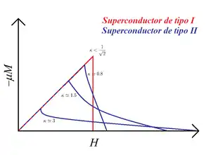 el cual es clave para distinguir entre los superconductores de tipo I y los de tipo II, ya que, como demostró Abrikósov (que fue quien propuso este criterio para la clasificación de los superconductores en 1957 en un famoso artículo[4][5]), se obtiene que: