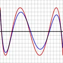 ![]() Error entre el polinomio óptimo y exp(x) (rojo), y la aproximación de Chebyshev y exp(x) (azul) durante el intervalo [−1, 1]. Las divisiones verticales son de 10−4. El error máximo para el polinomio óptimo es 5.47 × 10−4 |