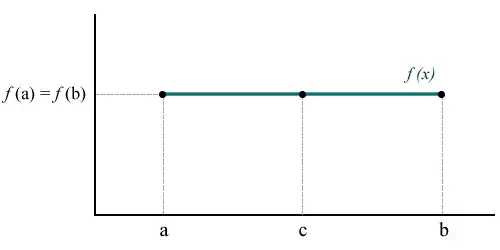 En la ilustración se ve una función constante, pero el teorema no solo se cumple en este caso. Se pueden dar tres casos en los que f(c) es distinto de f(a) y f(b), a saber: