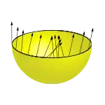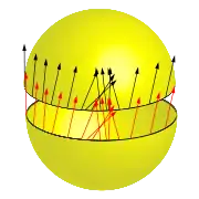 Para el desarrollo algebraico formal de las demostraciones expuestas, se puede tomar, por ejemplo, como un punto corriente de la esfera y el campo de vectores; a continuación se parametriza la esfera en coordenadas polares (suponiendo un radio 1):