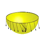 Si se tiene una aplicación sin punto fijo, entonces cada punto del disco permite definir un vector no nulo, el vector . Intuitivamente, la idea es «plegar» una esfera cortada por la mitad, y hacerla coincidir exactamente con el semi-disco.