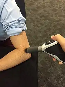 En fisioterapia se usa para tratar problemas musculoesqueléticos tales como epicondilitis, epitrocleítis, tendinopatías, fascitis plantar, espolón calcáneo, calcificaciones del hombro...[14]