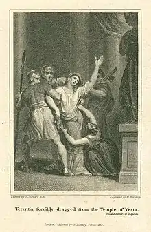 Sin embargo, Terencia no reveló los peores datos a Cicerón; probablemente para no alentar su depresión.[14] Se enteró por P. Valerio que Terencia fue arrastrada desde el Templo de Vesta al Banco de Valerio. Terencia puede también haber sufrido abusos físicos en este incidente, según lo indicado por discursos posteriores de Cicerón.[15]
