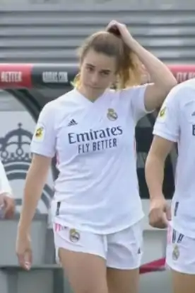 Su progresión y juventud hizo que el 13 de julio de 2020 el Real Madrid Club de Fútbol anunciase su fichaje para la temporada 2020-21 por sus destacadas actuaciones durante el pasado curso y ser pretendida por varios clubes, y tomó la misma decisión que su compañera Misa Rodríguez.[10][11] El equipo, que se estrenaba en la categoría tras fundarse a inicios de ese mismo mes por la fusión por absorción del Club Deportivo TACON, realizó una fuerte apuesta deportiva en jugadoras nacionales de gran proyección entre las que asentar su futuro. Su debut se produjo el 4 de octubre en la Ciudad Deportiva de Valdebebas frente a las vigentes campeonas del Fútbol Club Barcelona, donde la mayor experiencia y rodaje de las catalanas hizo que el partido finalizase con un 0-4 en contra.[12]