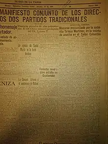 ![]() Fragmento del discurso de Teresa Martínez de Varela publicado el 19 de diciembre de 1930 por el "Diario de la Tarde ABC del Chocó" | ||