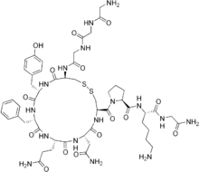 1-{[(4R,7S,10S,13S,16S,19R)-19-{[({[(aminoacetil)amino]acetil}amino)acetil]amino}-7-(2-amino-2-oxoetill)-10-(3-amino-3-oxopropil)-13-benzil-16-(4-hidroxibenzil)-6,9,12,15,18-pentaoxo-1,2-ditia-5,8,11,14,17-pentaazacicloicosan-4-yl]carbonil}-L-prolil-N-(2-amino-2-oxoetil)-L-lisinamida | ||