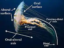 Los extremos proximal y distal que delimitan este eje, son empleados para definir la posición que ocupan los apéndices del cuerpo con respecto a este.