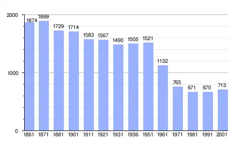 Gráfica de evolución demográfica de Terranova dei Passerini entre 1861 y 2001 |