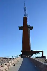 El Hito se encuentra detrás del edificio de Terrazas del Portezuelo. Su estructura de acero y hormigón, alcanza los 130 m de altura.