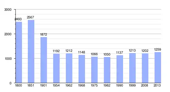 Los datos entre 1800 y 2013 son el resultado de sumar los parciales de las dos comunas que forman la nueva comuna de Terre-et-Marais, cuyos datos se han cogido de 1800 a 1999, para las comunas de Saint-Georges-de-Bohon[4] y Sainteny[5] de la página francesa EHESS/Cassini. Los demás datos se han cogido de la página del INSEE.[6]