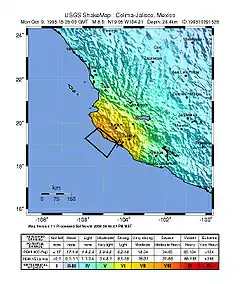 El terremoto de Colima de 1995 fue un sismo ocurrido a las 09:35:53 hora local (15:35:53 UTC) del lunes 9 de octubre de 1995, que alcanzó una magnitud de 8,0 (MW).[1] El epicentro se localizó en la costa de Colima y causó la muerte de 49 personas y miles de damnificados. El sismo provocó un tsunami a lo largo de la costa de los estados de Jalisco y Colima.