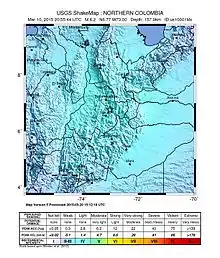 - «Mapa de intensidad sísmica de Colombia». Servicio Geológico Colombiano. Archivado desde el original el 2 de abril de 2015. Consultado el 26 de marzo de 2015.