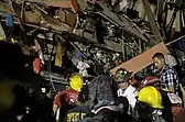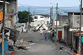 El terremoto de Ecuador de 2016 fue un movimiento sísmico ocurrido a las 18:58 ECT del sábado, 16 de abril, con epicentro entre las parroquias Pedernales y Cojimíes del cantón Pedernales, en la provincia ecuatoriana de Manabí.[1] Con una magnitud Mw = 7,8,[6] constituye el sismo más fuerte sentido en el país desde el terremoto de Colombia de 1979, el más destructivo desde los terremotos de Ecuador de 1987[7] y el cuarto más grande (en magnitud) de 2016. Las ondas sísmicas llegaron al suroccidente de Colombia, sintiéndose en ciudades de ese país como Tumaco, Cali, Pasto, Popayán y Neiva;[8] y a la frontera norte de Perú, en regiones como Tumbes, Piura, Cajamarca, Lambayeque y Amazonas.[9] También fue percibido en países tan lejanos como Venezuela y Panamá.