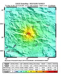 - «Magnitud Turquia». USGS. 19 de mayo de 2011. Archivado desde el original el 22 de mayo de 2011. Consultado el 20 de mayo de 2011.