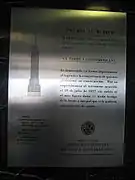 - Placa conmemorativa del terremoto de 1957 en el vestíbulo de la Torre Latinoamericana, que no sufrió daños.