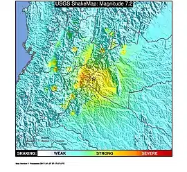 ![]() Áreas afectadas por el terremoto. | ||