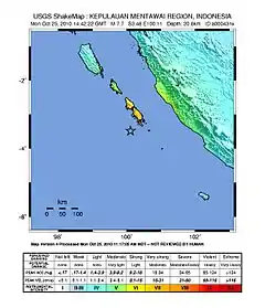 El terremoto de Sumatra de octubre de 2010 fue un terremoto de 7,7 que sacudió la isla de Sumatra, Indonesia, el 25 de octubre de 2010. El Centro de Alerta de Tsunamis del Pacífico de Honolulu emitió una alerta de tsunami, pero luego fue cancelada, debido a que el organismo precisó que "no había peligro de tsunami luego del análisis de los registros históricos de esos fenómenos”.[2] Sin embargo, horas más tarde, se pudo comprobar que el tsunami finalmente si se había producido.
