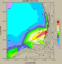 El epicentro del terremoto de 1918 en Puerto Rico se ubicó en canal de la Mona, aproximadamente a 5 km de la costa noroeste de la isla, probablemente alrededor de una vieja falla cercana a la Fosa de Puerto Rico. Los temblores más fuertes estimados alcanzaron magnitudes de 8.5 en la escala Richter o el Nivel IX en la escala Rossi-Forel.