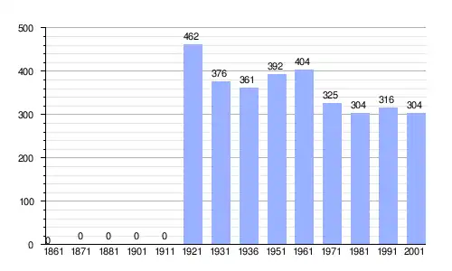 Gráfica de evolución demográfica de Terres entre 1861 y 2001 |