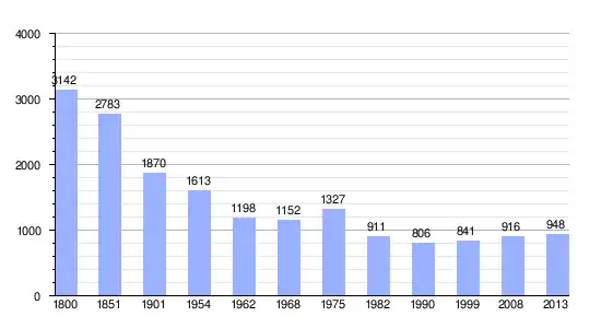 Gráfica de evolución demográfica de Terres-de-Druance entre 1800 y 2013 |