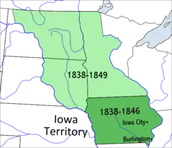 Burlington fue la capital provisional; Iowa City fue designado como la capital oficial del territorio en 1841.[2]