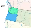 - El Territorio de Washington (verde) y Territorio de Oregón (azul) en 1853.