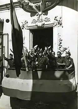 En Sevilla 4000 hombres al mando del general Gonzalo Queipo de Llano ―aunque el verdadero cerebro de la conspiración fue el comandante José Cuesta Monereo―[121] se hicieron con el control del centro de la ciudad el sábado 18 de julio, contando con la pasividad del general jefe de la II División Orgánica José de Fernández Villa-Abrille y su estado mayor, a pesar de las reiteradas peticiones para que actuara por parte del gobernador civil José María Varela Rendueles ―este fue condenado a muerte pero la pena le fue conmutada por la de 30 años de prisión―. Al día siguiente se presentó en Sevilla el comandante Antonio Castejón Espinosa al frente de 30 legionarios, a los que se unieron 150 hombres más entre falangistas, requetés y guardias civiles. Con estas fuerzas Castejón inició la toma de los barrios populares de Triana, La Macarena, San Julián y San Marcos donde los militantes de las organizaciones obreras estaban preparados para hacer frente al golpe. Contó con el apoyo de la artillería y de la aviación que bombardearon los barrios obreros, causando muchos muertos. Una vez ocupados muchos hombres y mujeres, e incluso niños, fueron pasados por las armas. Sus cadáveres aún estaban por las calles cuando el nuevo alcalde de Sevilla nombrado por Queipo de Llano, el falangista Ramón de Carranza, ordenó a los supervivientes, en su mayoría mujeres y niños, que limpiaran las fachadas de las casas para quitar las consignas republicanas y antifascistas que había en ellas.[122][123][124] Una mujer recordó así los días que siguieron a la ocupación del barrio obrero donde vivía:[125]