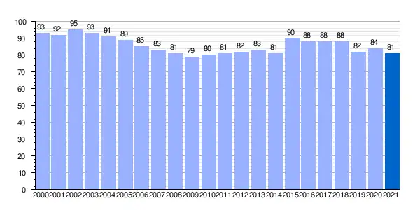 Gráfica de evolución demográfica de Tertanga[3] entre 2000 y 2021 |