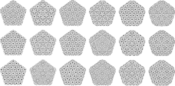 Las teselaciones aperiódicas de Penrose pueden generarse no solo mediante un conjunto aperiódico de prototeselas, sino también mediante una sustitución y un método de corte y proyección. Después del descubrimiento de los cuasicristales, los materiales aperiódicos son estudiados intensamente por físicos y matemáticos. El método de cortar y proyectar de N.G. de Bruijn para los mosaicos de Penrose finalmente resultó ser una instancia de la teoría del conjunto de Meyer.[10][11] Hoy en día existe una gran cantidad de bibliografía sobre revestimientos aperiódicos.[5]