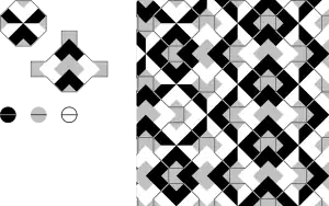 Sin embargo, los mosaicos que se muestran a continuación fuerzan a emerger la estructura de sustitución de la silla, por lo que son aperiódicos.[14]