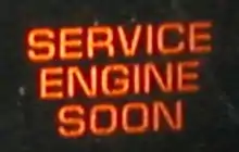 Esta luz se enciende, generalmente en rojo, ámbar o amarillo, para indicar un mal funcionamiento o que se precisa reparar la centralita electrónica del sistema de inyección. Se encuentra en la consola de instrumentos de la mayoría de los automóviles. En los Estados Unidos, las normas de protección ambiental requieren funciones específicas de este avisador. A diferencia de otros tipos de indicadores, sus indicaciones no corresponden con parámetros observables en un medidor.[11]