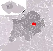 Se encuentra ubicada al oeste de la región y de Praga, en la cuenca hidrográfica del río Berounka —un afluente izquierdo del río Moldava—, y cerca de la frontera con la región de Pilsen.[1]