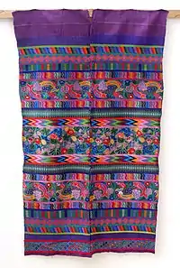Los textiles mayas son la vestimenta y otras artes textiles de los pueblos mayas, pueblos indígenas de la península de Yucatán en México, Guatemala, Honduras, El Salvador y Belice. Las mujeres han creado tradicionalmente textiles en la sociedad maya, y los textiles eran una forma importante de arte y creencias religiosas mayas antiguas. Fueron considerados un bien de prestigio que distinguiría a los plebeyos de la élite.[1] Según Brumfiel, algunos de los tejidos más antiguos encontrados en Mesoamérica pueden remontarse alrededor de 1000-800 a.C.[1]