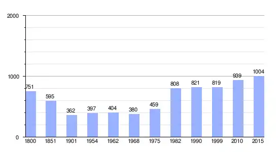 Gráfica de evolución demográfica de Thénouville entre 1800 y 2015 |