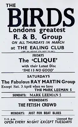 The Birds fue una banda de R&B y rock formada en 1964 en la ciudad de Londres. En su carrera grabaron cerca de una docena de canciones y publicaron cuatro sencillos. El miembro más reconocido de esta banda, el guitarrista Ronnie Wood, conformó agrupaciones más populares como The Jeff Beck Group, The Creation, Faces y The Rolling Stones.[1][2]