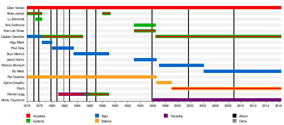 - Captain Sensible - guitarra (1978-1984, 1989, 1996-actualidad); bajo (1976-1978)