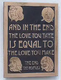 McCartney dijo, "Quería que el medley termine con una frase significativa, así que siguiendo al Bardo (William Shakespeare) escribí un pareado".[2] En su entrevista para Playboy de 1980, Lennon admitiría que McCartney escribió la letra, diciendo: "Ese es Paul otra vez... Tenía una línea ahí, 'And in the end, the love you get is equal to the love you give', que es una línea muy cósmica y filosófica. Que prueba de nuevo que si quiere, puede pensar".[3] Lennon citó la cita incorrectamente, la línea de la canción es: "And in the end, the love you take is equal to the love you make" ("Y al final, el amor que te llevas es equivalente al amor que das").