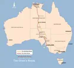 The Ghan es un tren de pasajeros que une Adelaida, Alice Springs y Darwin en el ferrocarril Adelaida-Darwin, en Australia. Operado por Great Southern Rail, tarda 54 horas en recorrer los 2.979 kilómetros con una escala de cuatro horas en Alice Springs. Este histórico ferrocarril, cuyo nombre es una abreviación de The Afghan Express, fue inaugurado en 1929.[1]