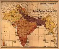 Mapa de la "Densidad de población" de la India en 1909. The Imperial Gazetteer of India.