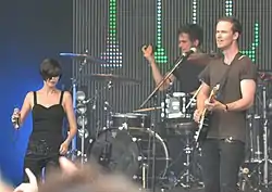 ![]() The Jezabels (de izquierda a derecha): Hayley Mary, Nik Kaloper, Sam Lockwood. Falls Festival, enero de 2012 en Marion Bay | ||