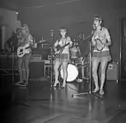 ![]() Momento del concierto celebrado en Bergen (Noruega) el 29 de julio de 1968. De izquierda a derecha, Sussi (20 años), Janette (20), Lonni Andersen (18) y Michelle Beauvais (23). | ||